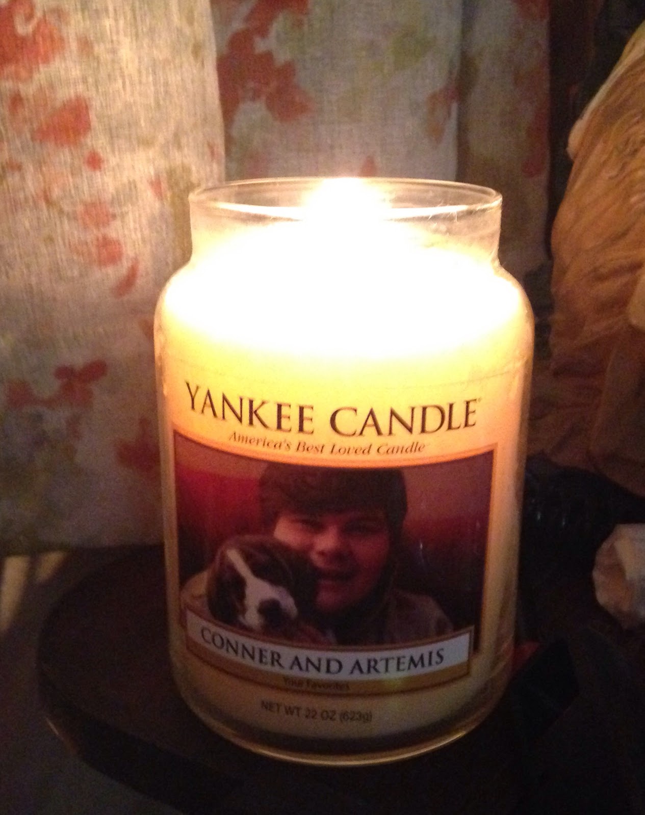 Or how about a personalized candle? My son got me this one from Yankee Candle.